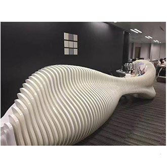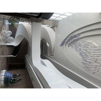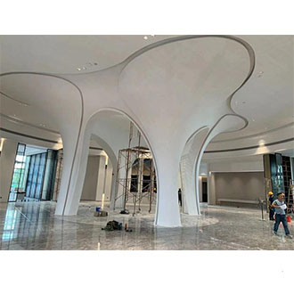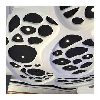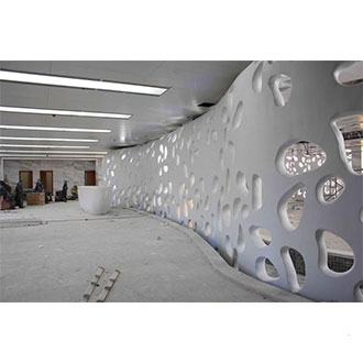 4mm厚的GRG材料,透过500H2 23d100H2 27ab;气干比重1.75,符合专业声学要求经过良好的造型设计,可构成良好的吸声结构,达到隔声、吸声的作用