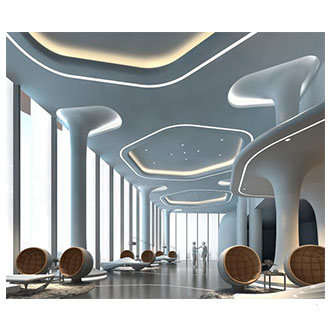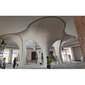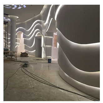 4mm厚的GRG材料,透过500H2 23d100H2 27ab;气干比重1.75,符合专业声学要求经过良好的造型设计,可构成良好的吸声结构,达到隔声、吸声的作用
